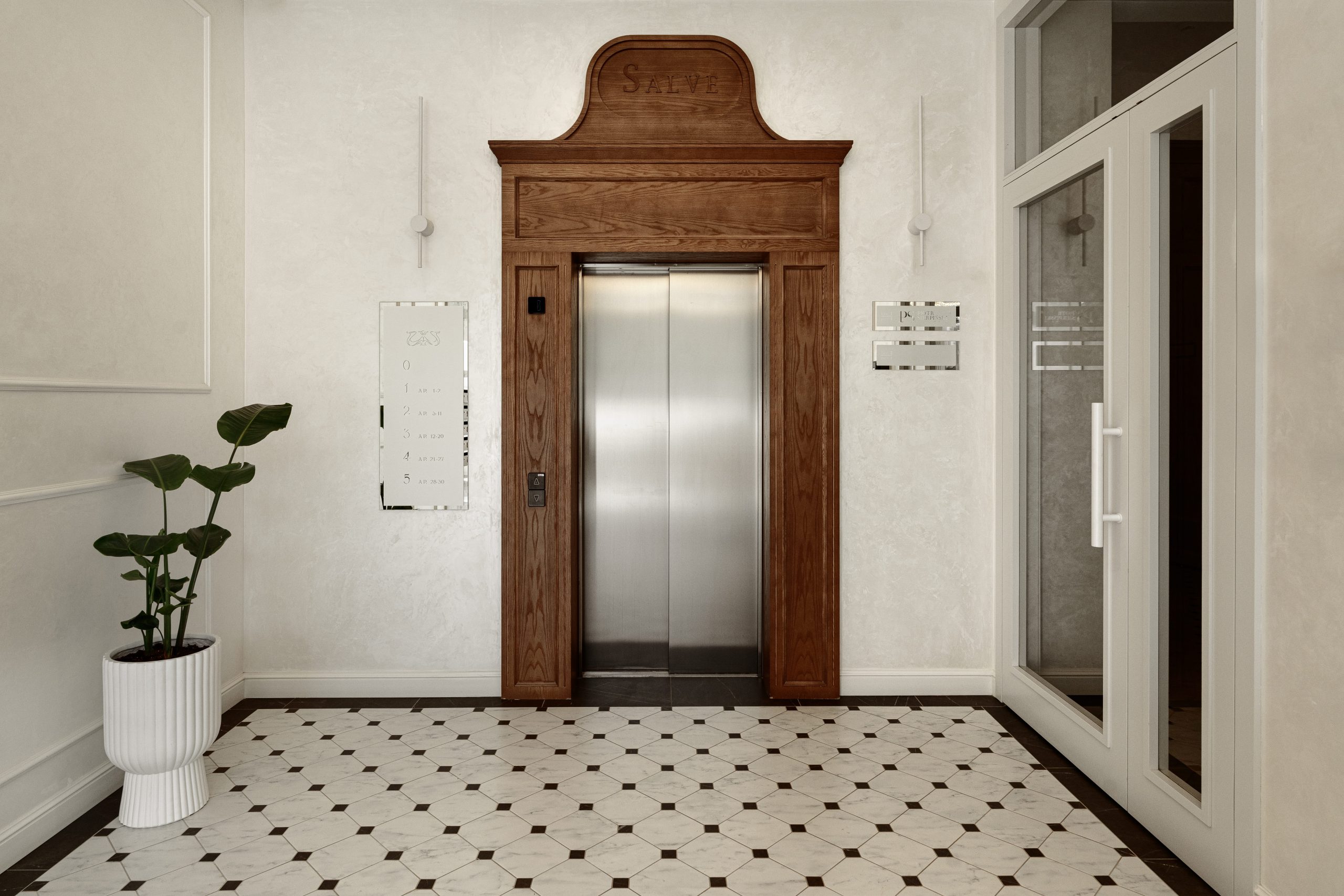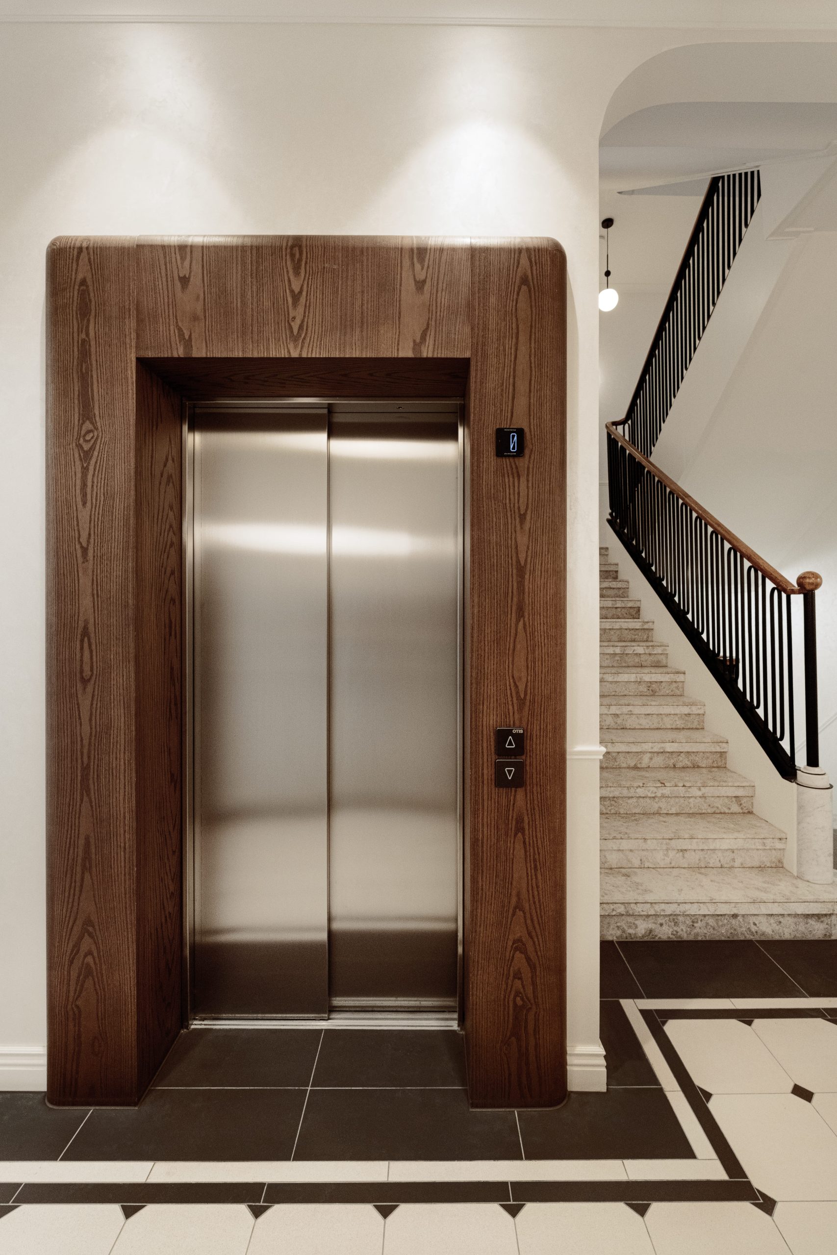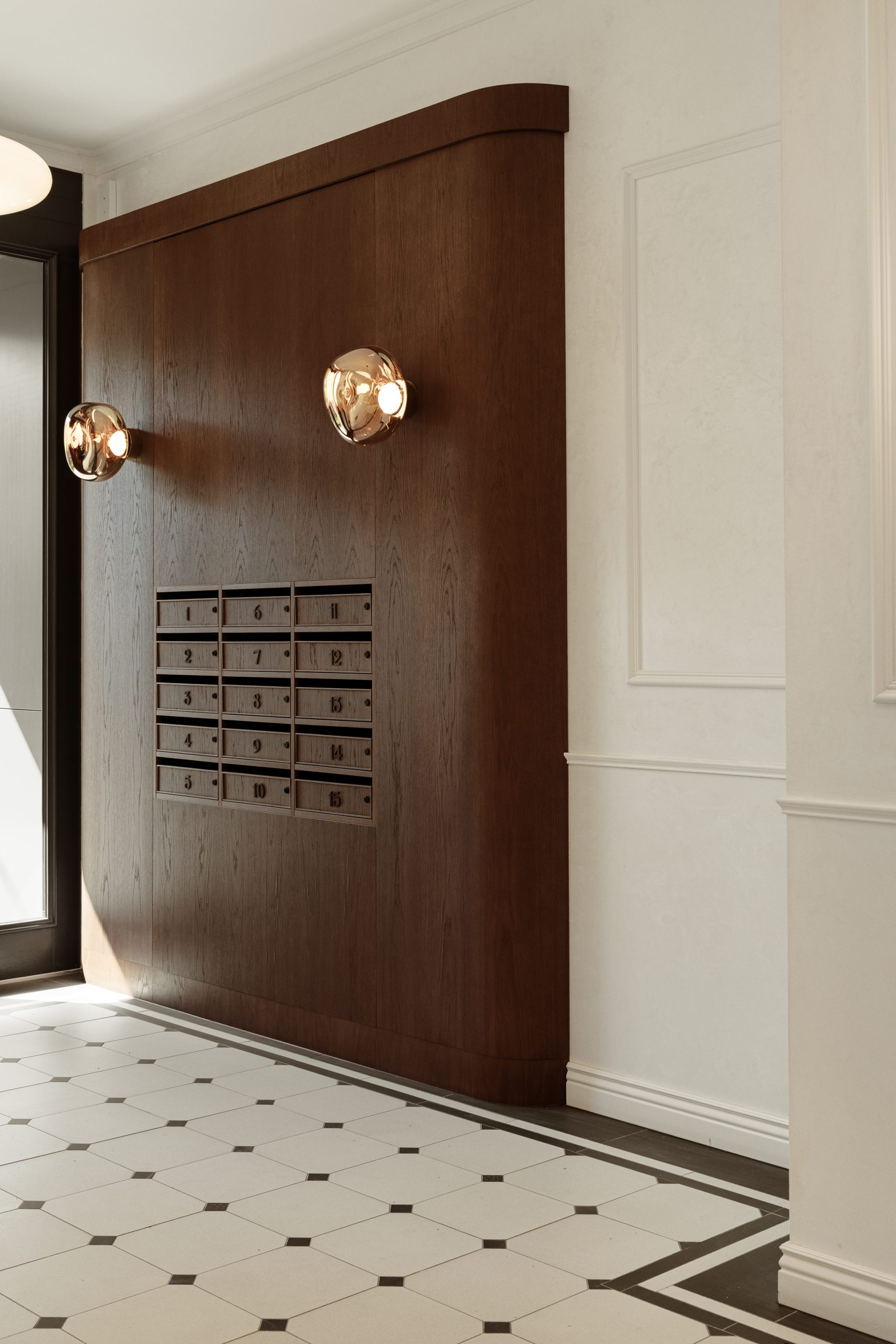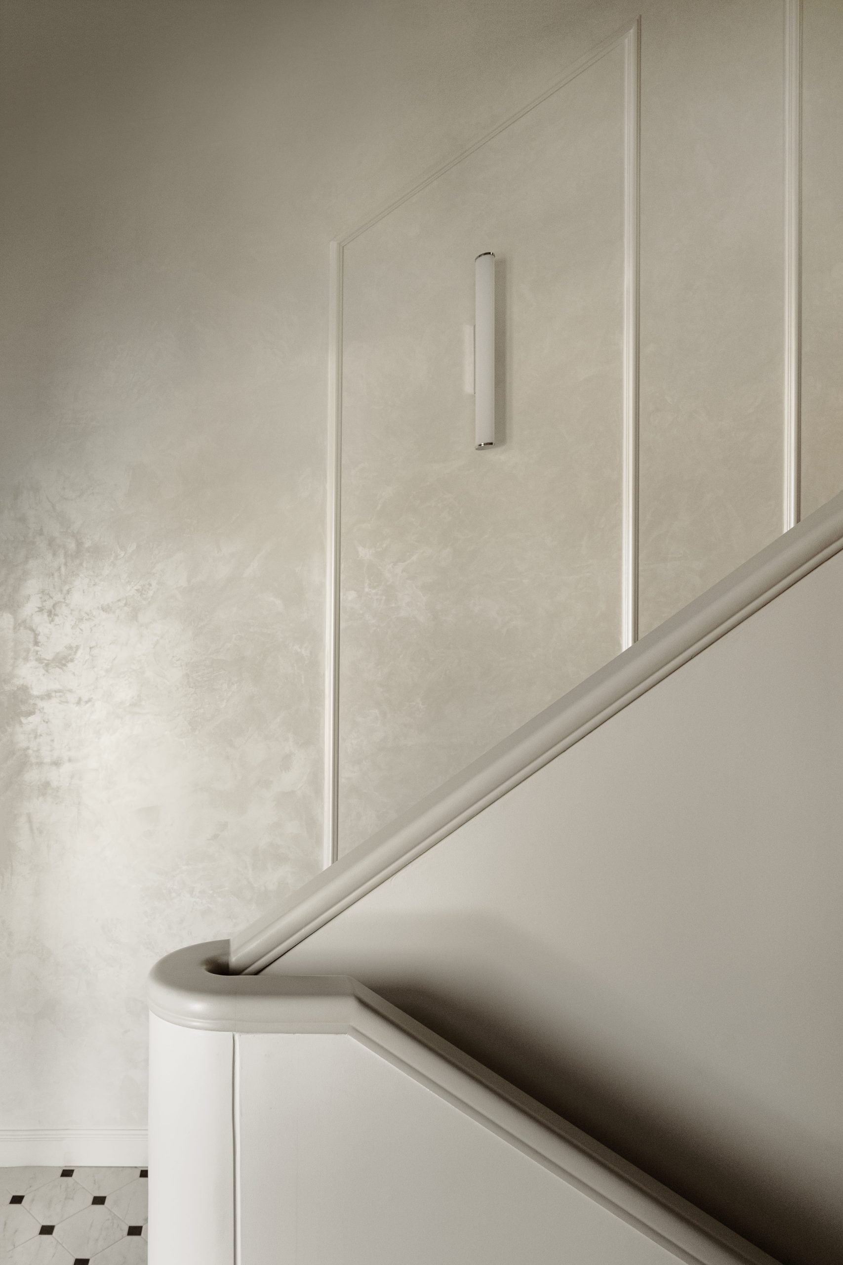 We wnętrzach pojawiają się subtelne nawiązania do secesyjnej ornamentyki i linii, zestawione z nowoczesnym oświetleniem i detalami. Takie połączenie pozwoliło zachować historyczną tożsamość kamienic, nadając im jednocześnie świeżość i aktualny wyraz.