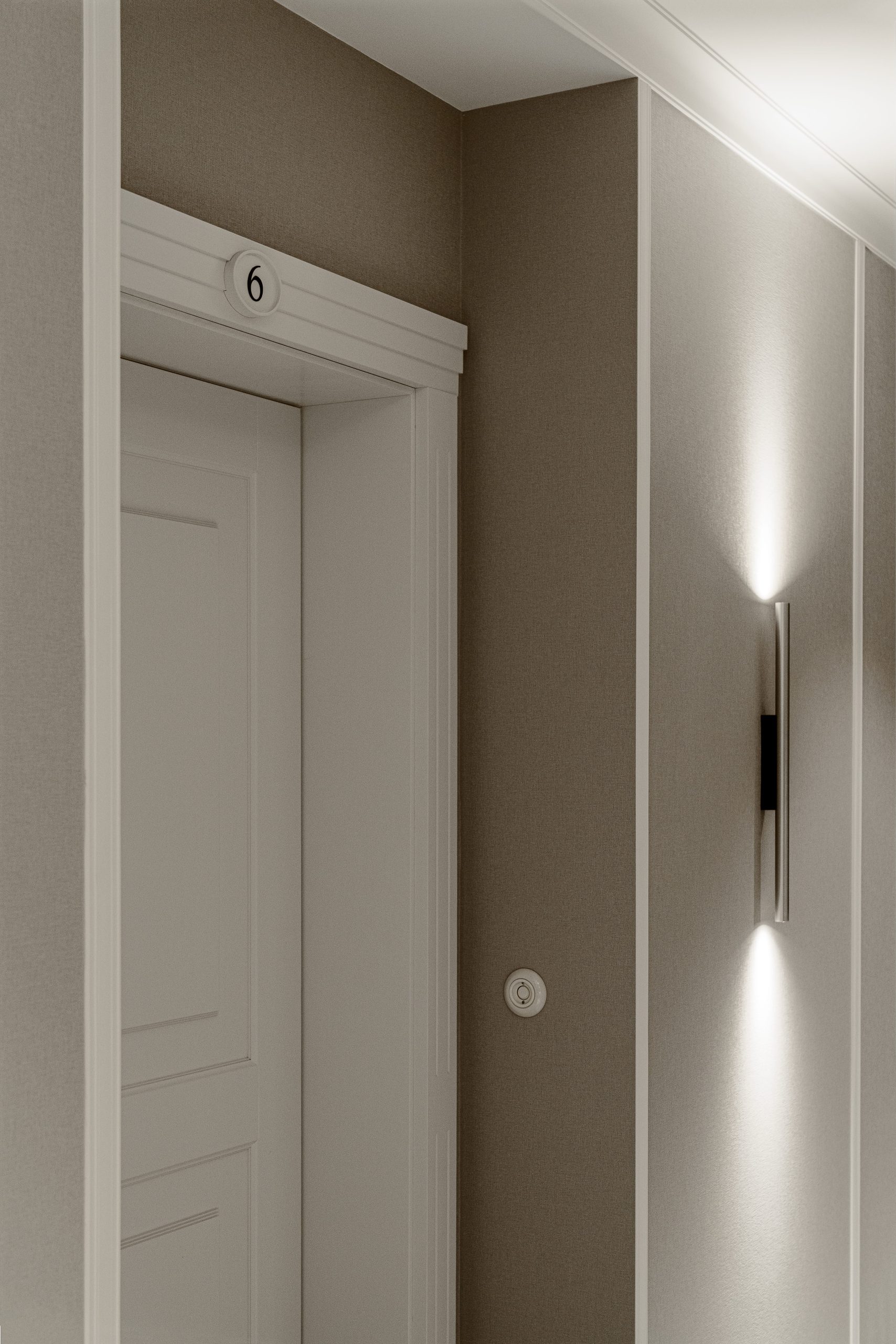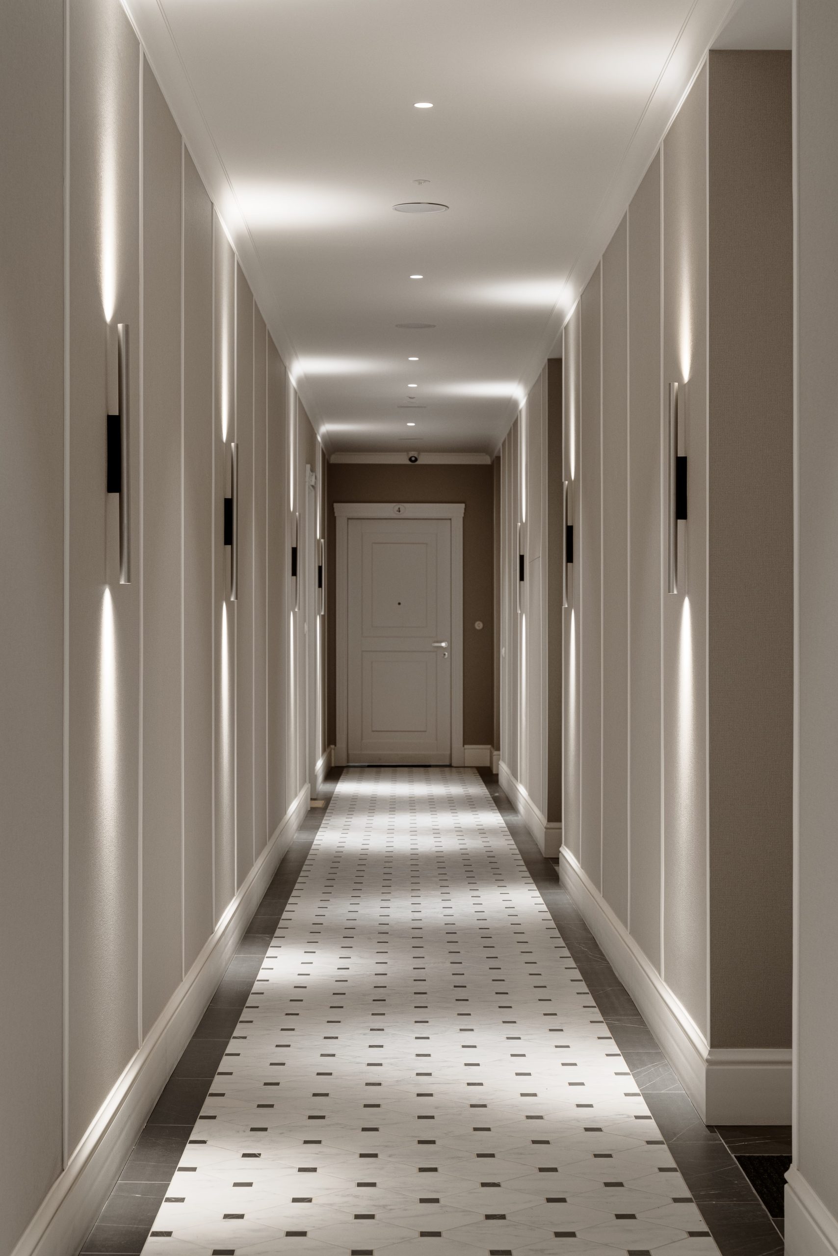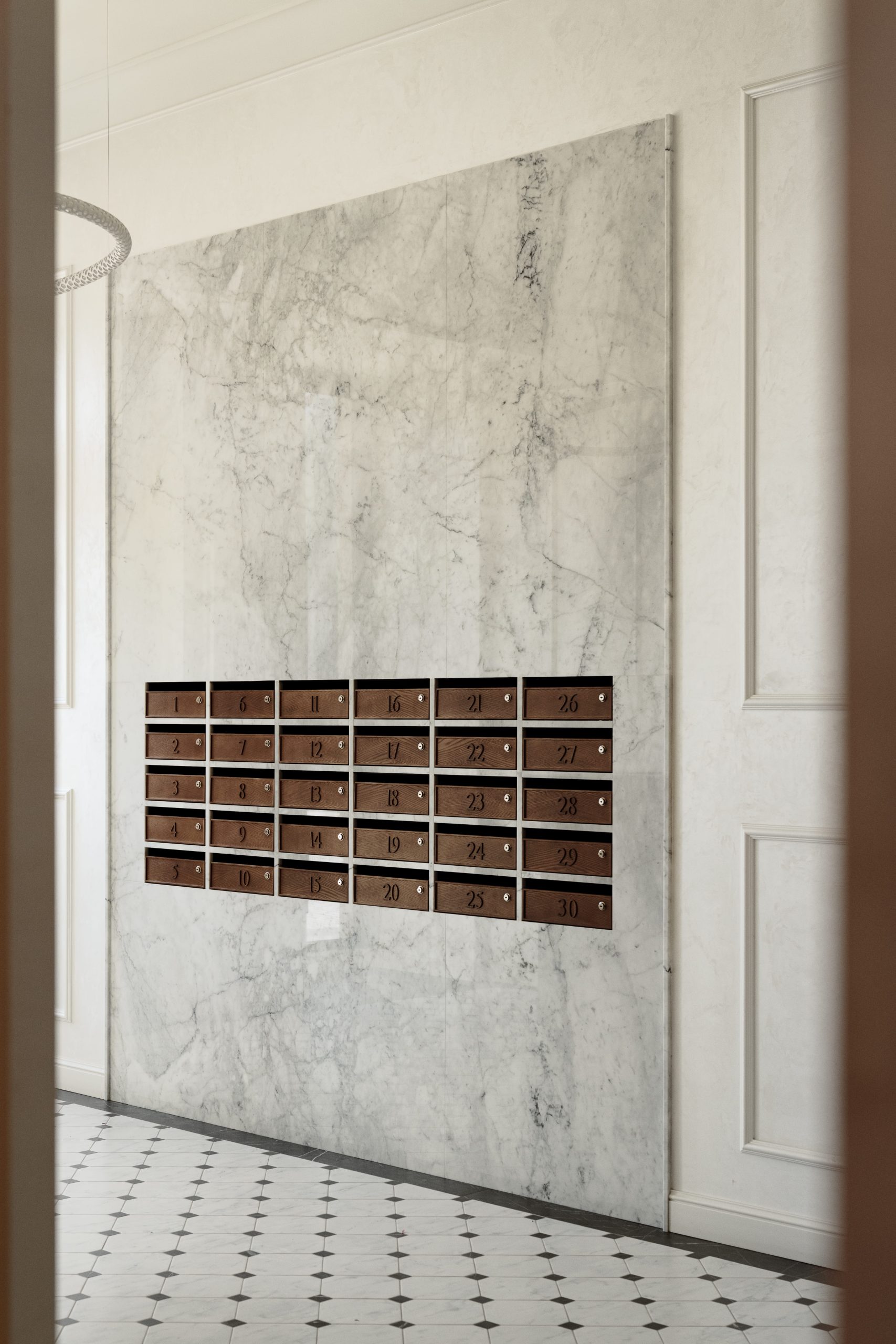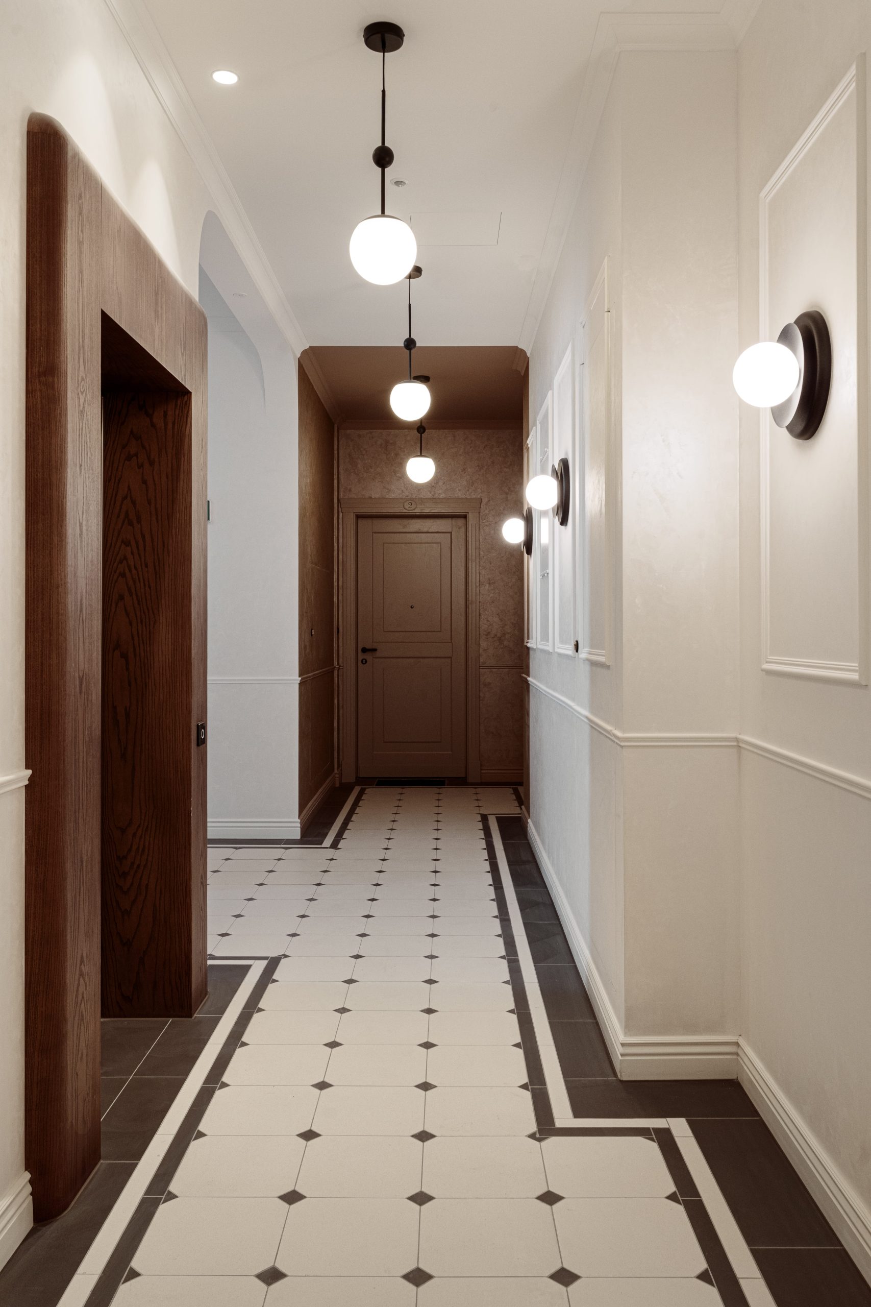 We wnętrzach pojawiają się subtelne nawiązania do secesyjnej ornamentyki i linii, zestawione z nowoczesnym oświetleniem i detalami. Takie połączenie pozwoliło zachować historyczną tożsamość kamienic, nadając im jednocześnie świeżość i aktualny wyraz.