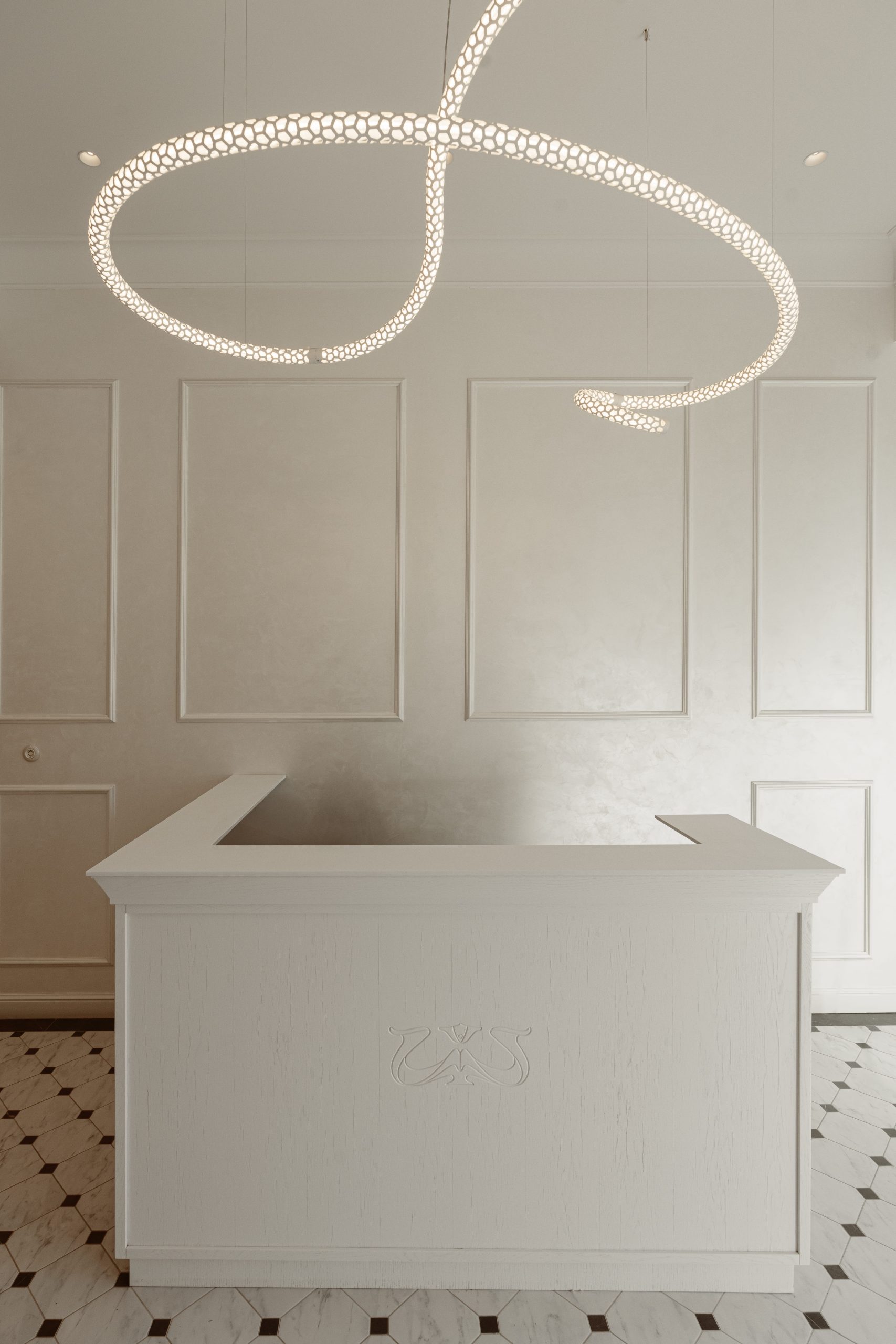 Całość opiera się na ponadczasowej kolorystyce oraz konsekwentnie prowadzonej estetyce, budującej atmosferę elegancji i harmonii. Starannie dobrane materiały i światło wzmacniają reprezentacyjny charakter przestrzeni, tworząc spójną i trwałą jakościowo strukturę wnętrza.