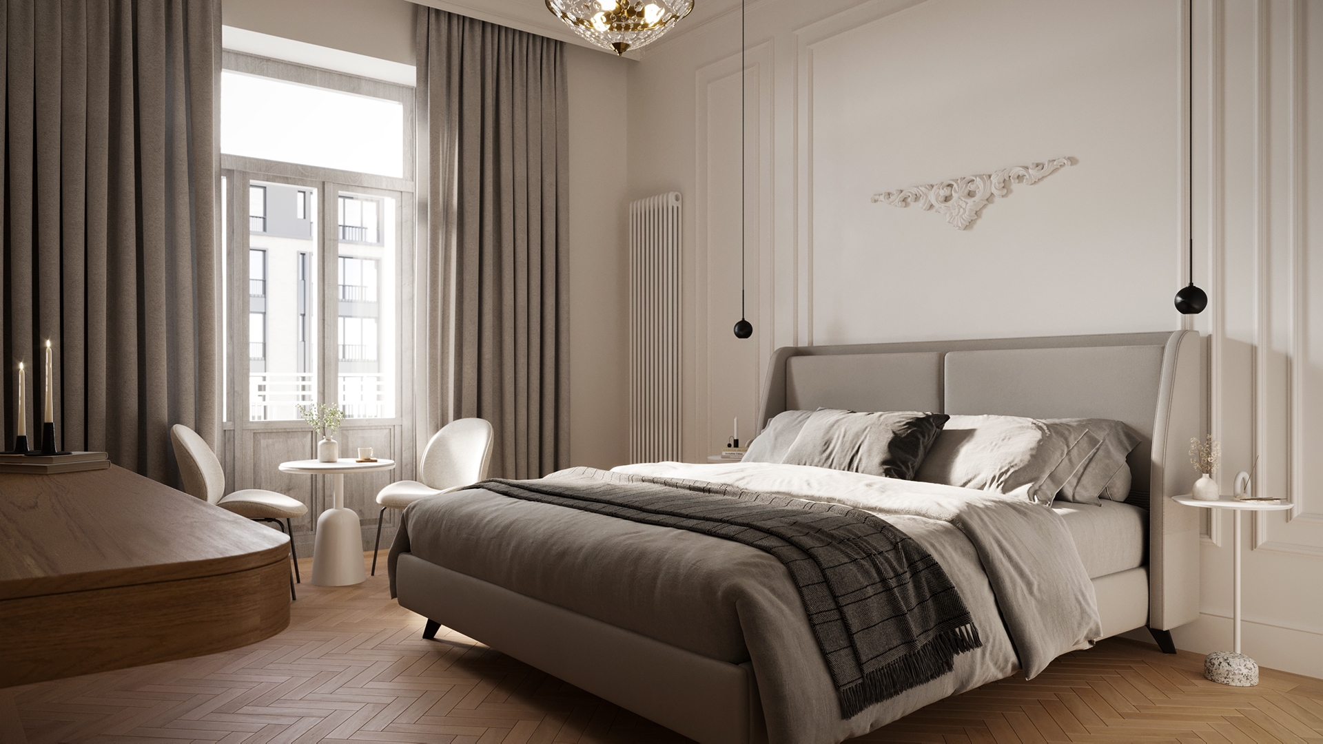 Harmonia stylów – nowoczesne elementy współgrają z historycznymi detalami, tworząc spójne wnętrze.